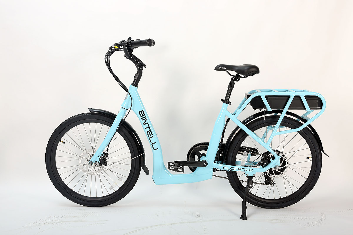 The stylish Florence is one of the top step through E-bikes on the market. This electric bike comes with many standard features, such as a 12.5AH lithium ion battery, an LCD display, and a powerful 500 watt motor that is capable of reaching speeds up to 20mph. For your commuter needs we’ve added in a rear rack and industry-leading low step-through frame design. Every Bintelli E-bike comes equipped with a headlight, taillight, seat post suspension, rim reflectors, and a UL approved charger. This model is available in many colors.